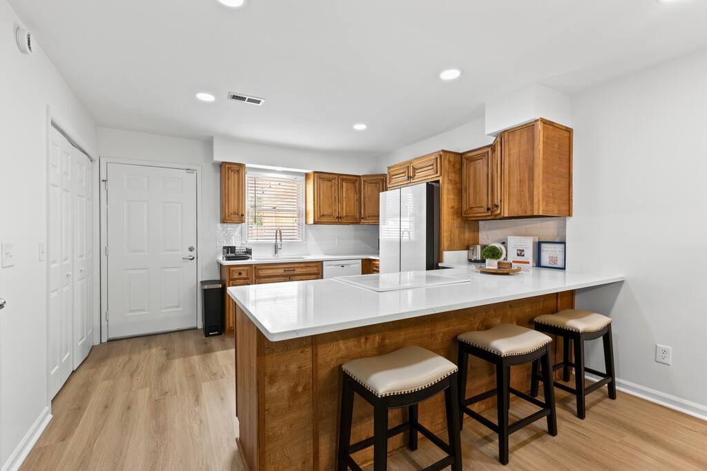 Welcome to Aubie’s Hangout—your stylish Auburn retreat! Just a short walk to campus and downtown restaurants, this fully remodeled townhouse sleeps 6 with 1 king and 2 queen beds. Enjoy a spacious living room, modern kitchen, and a charming back patio oasis with grill, seating, and fire pit. Southern charm meets Tiger pride with Auburn memorabilia throughout. Perfect for game days, family visits, golf trips or weekend getaways! Designated 2 parking spots in front of townhouse.