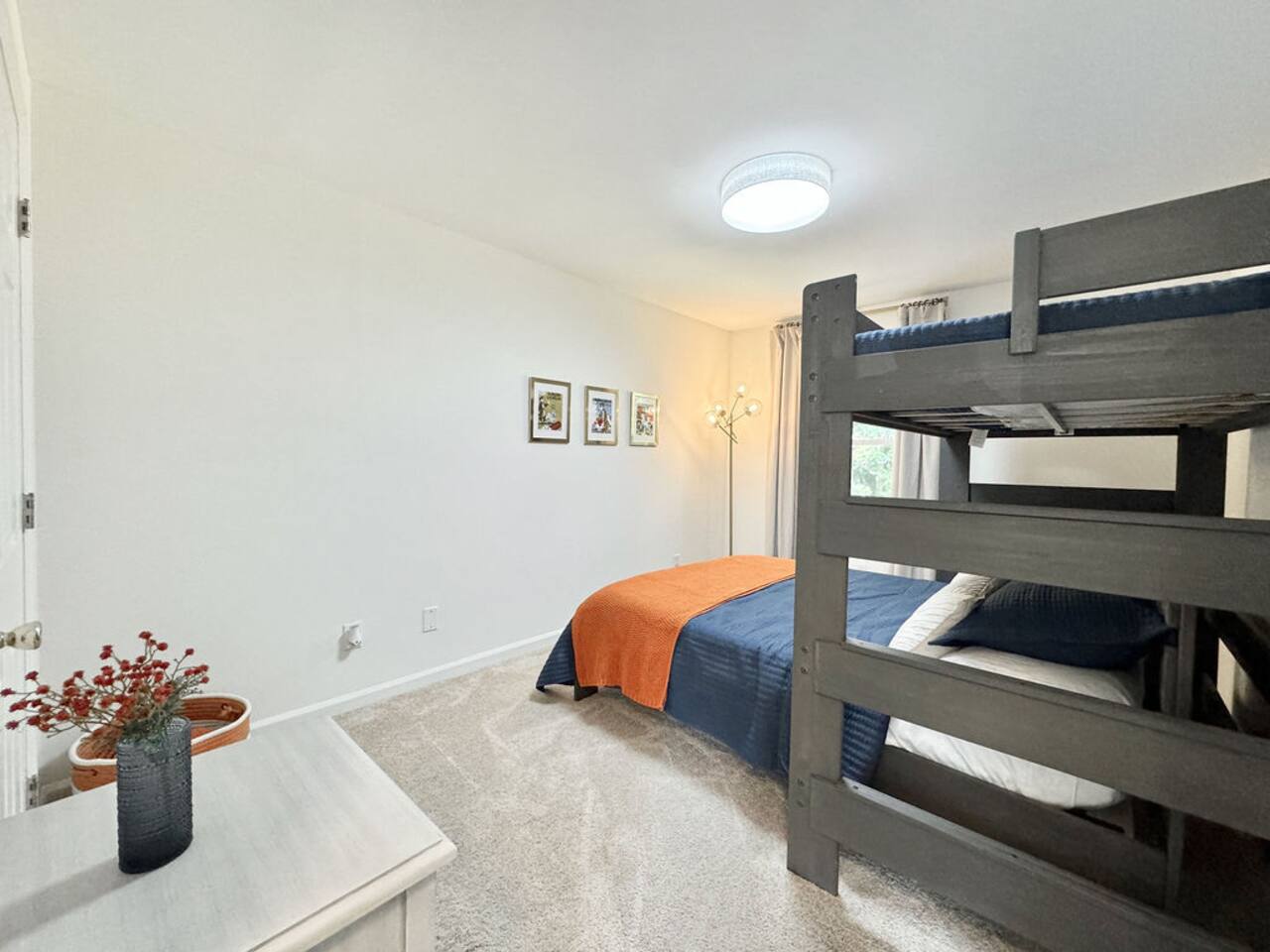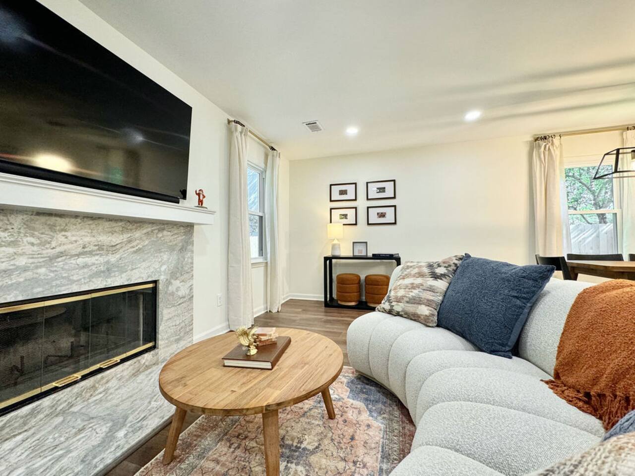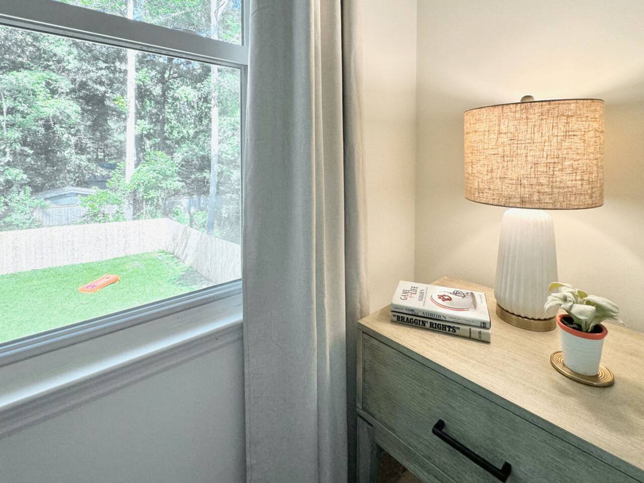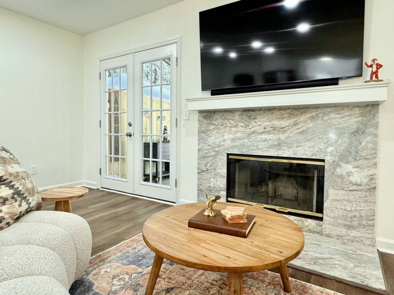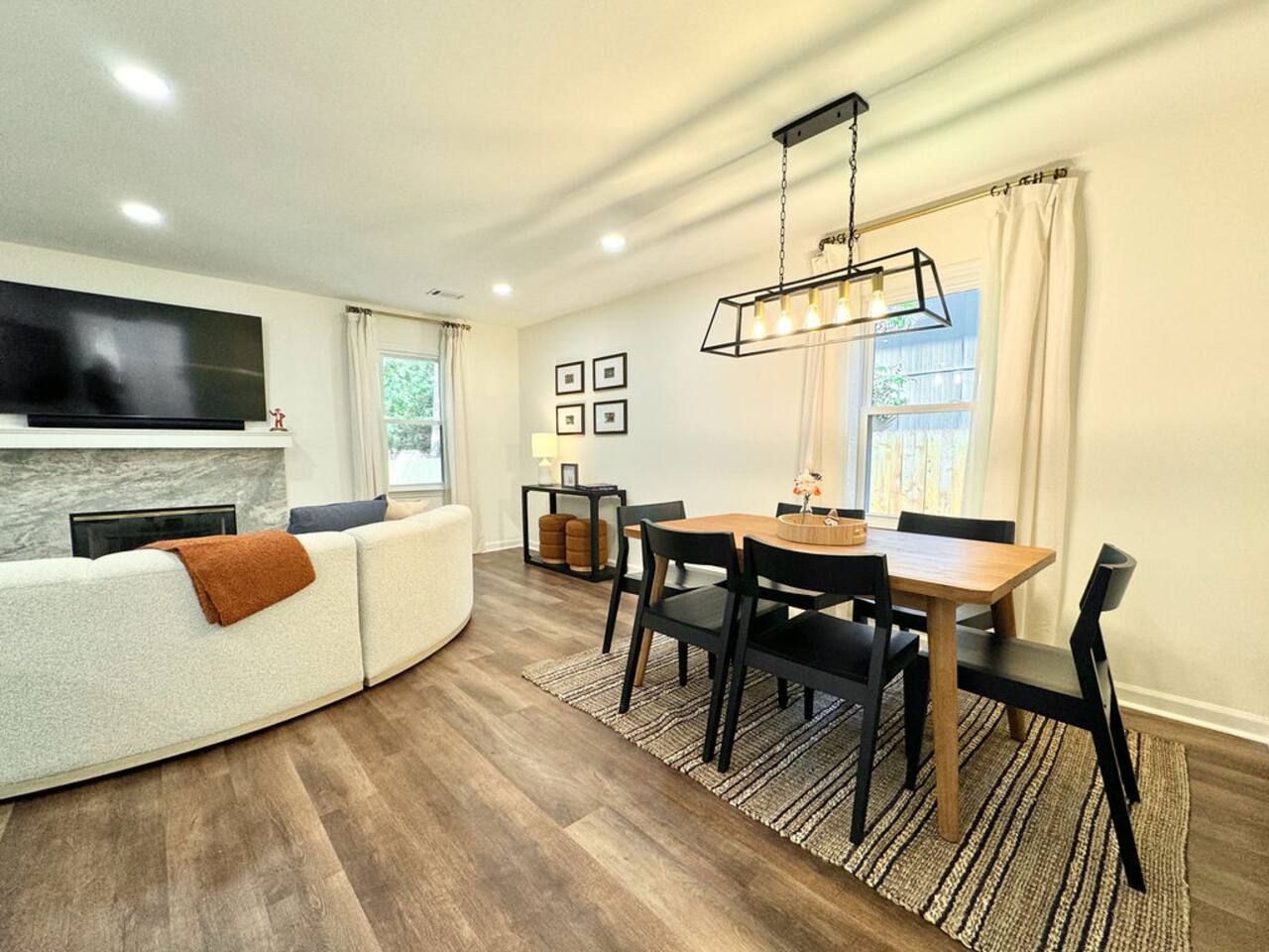 THE SPACE Comfortably sleeps 7 to 9 — Bedroom 1 - King Bed Bedroom 2 - King Bed Bedroom 3 - Queen/Twin Bunk Bed Additional Queen size air mattress available upon request. 2 full baths are upstairs. 1/2 bath plus laundry room are downstairs. FREE PARKING for 3-4 cars. An extended private driveway is in front. EATING AREA for 9– 6 top dining table plus 3 counterstools at kitchen bar. MODERN LIVING AREA Stylish curved sofa facing updated fireplace and tv. Stocked coffee bar. Extendable dining table FENCED BACKYARD WITH LARGE PATIO New Weber grill, outdoor dining table with built-in fire pit, large cooler on wheels. Corn hole and Jenga too! IF AUBIE'S ABODE IS ALREADY BOOKED FOR YOUR DATES - check out our sister property that is in the same neighborhood just a few doors down. Aubie's Hangout - 2 bedrooms - sleeps 6
