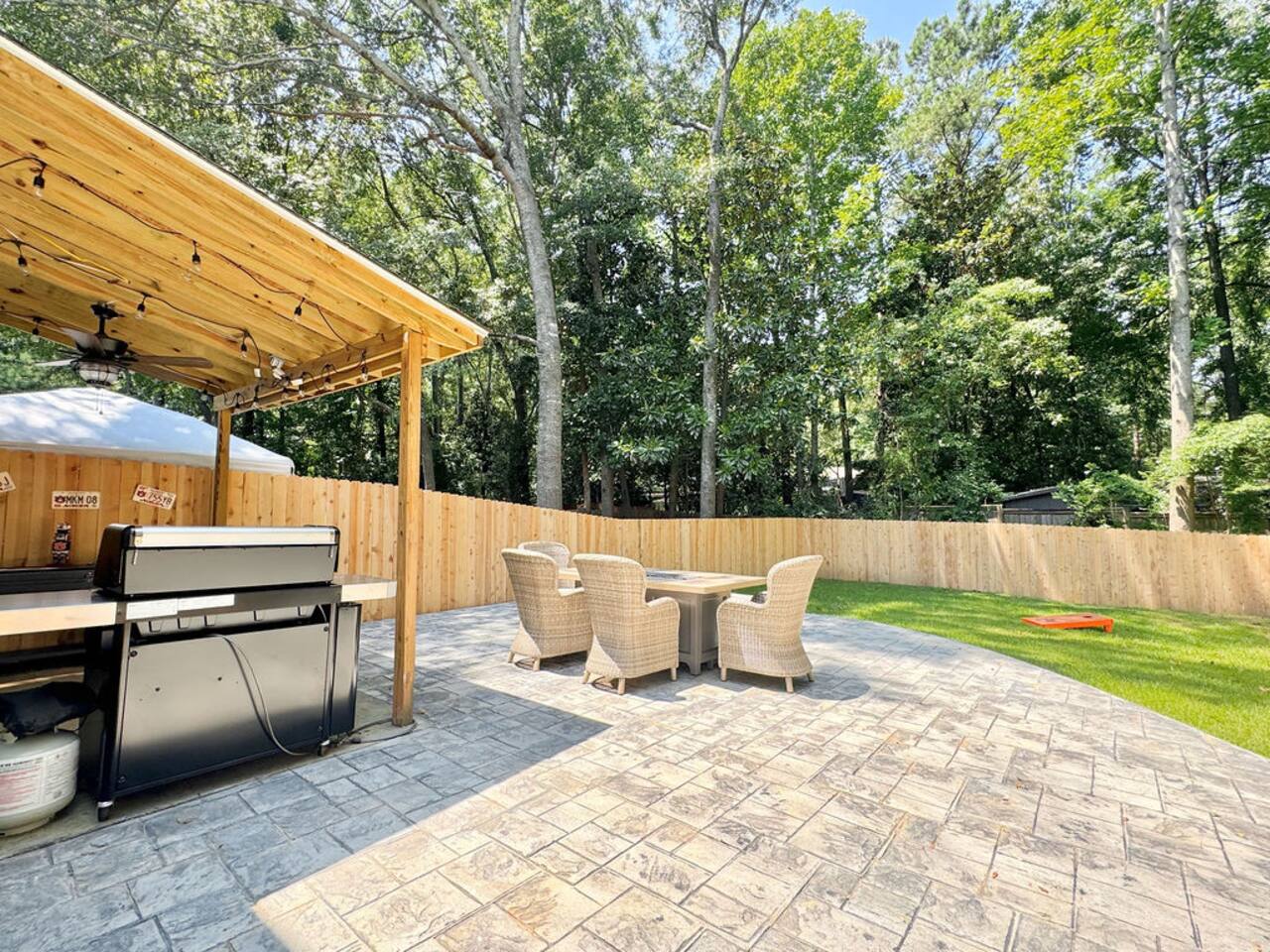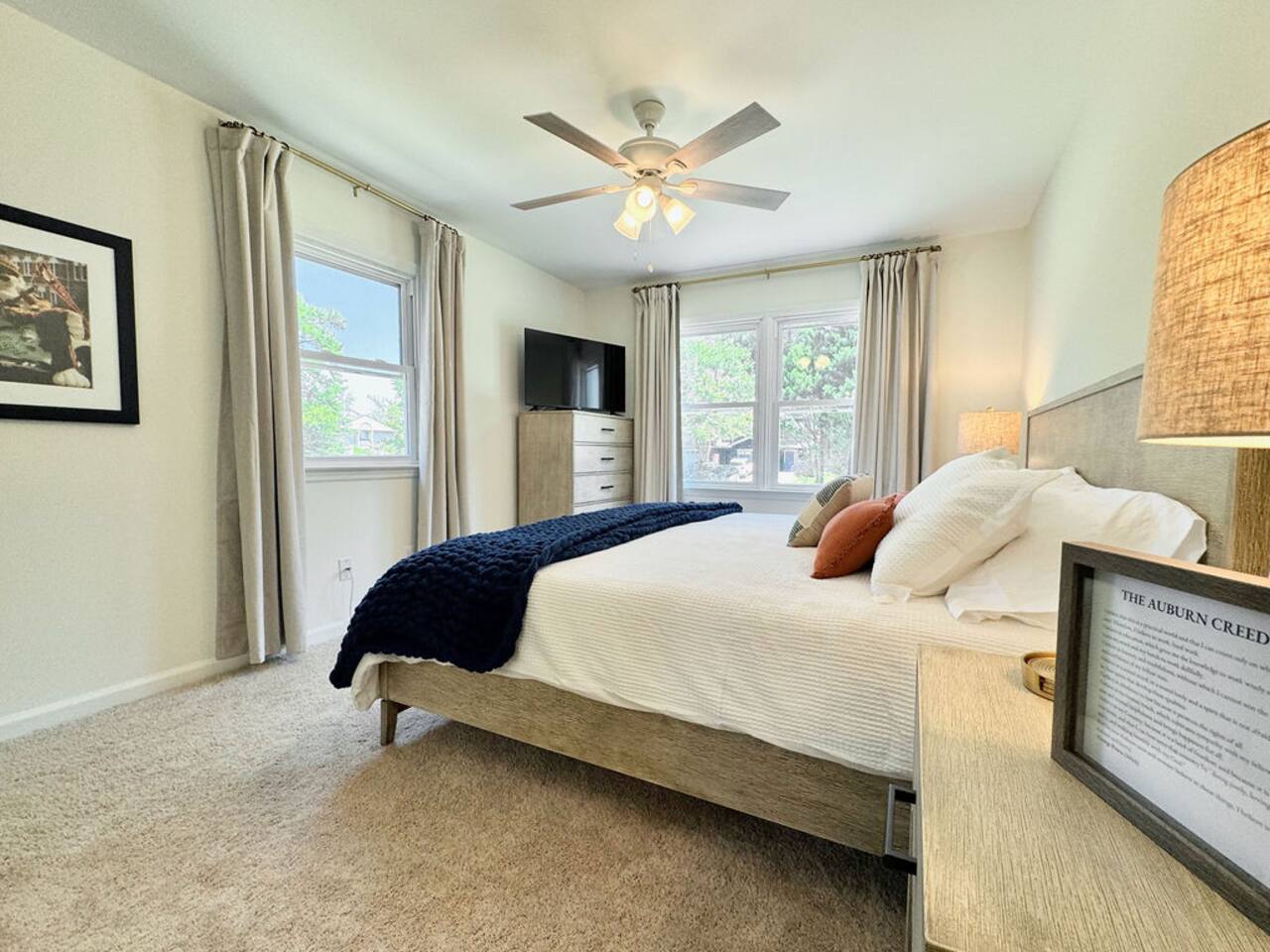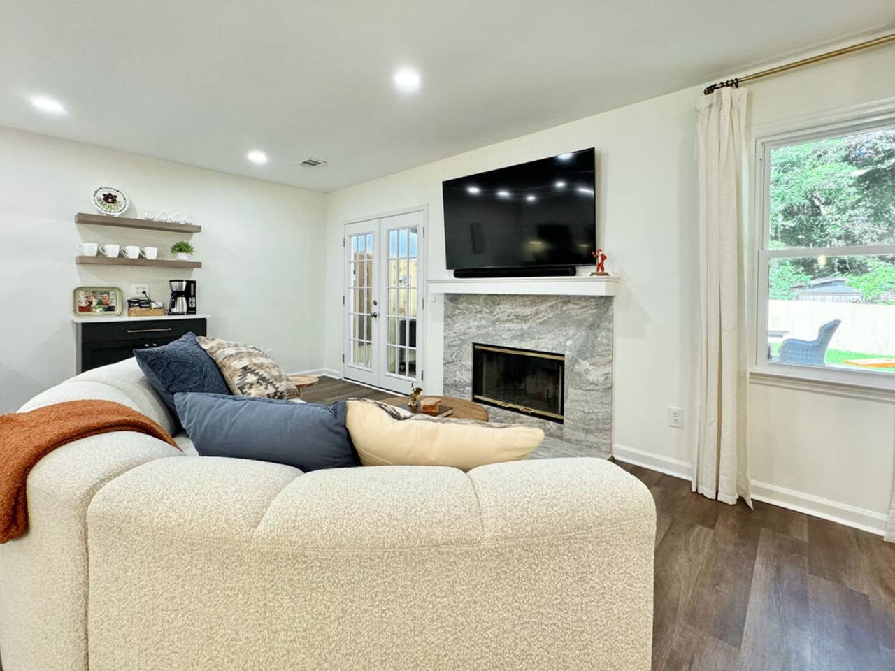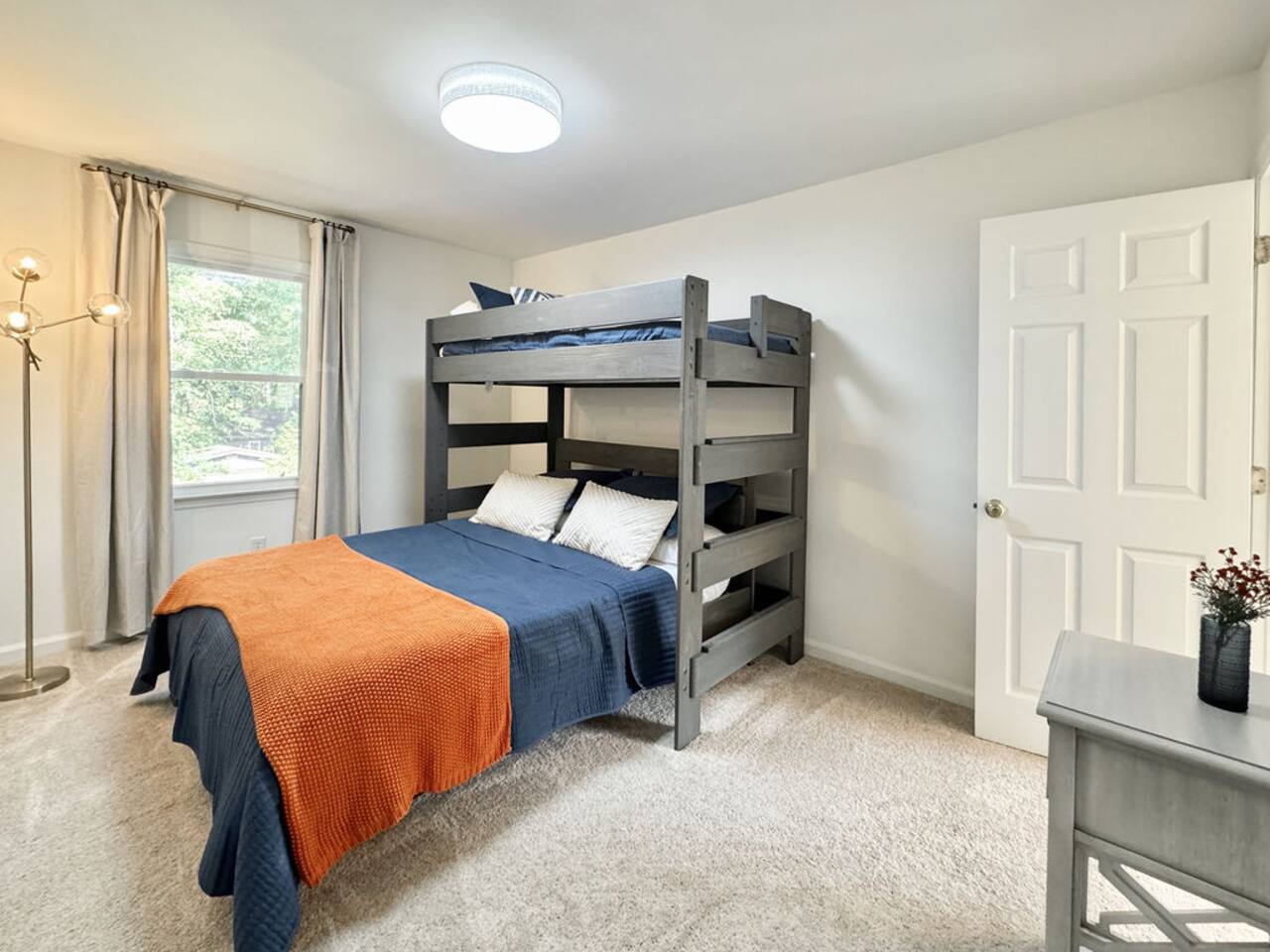 THE SPACE Comfortably sleeps 7 to 9 — Bedroom 1 - King Bed Bedroom 2 - King Bed Bedroom 3 - Queen/Twin Bunk Bed Additional Queen size air mattress available upon request. 2 full baths are upstairs. 1/2 bath plus laundry room are downstairs. FREE PARKING for 3-4 cars. An extended private driveway is in front. EATING AREA for 9– 6 top dining table plus 3 counterstools at kitchen bar. MODERN LIVING AREA Stylish curved sofa facing updated fireplace and tv. Stocked coffee bar. Extendable dining table FENCED BACKYARD WITH LARGE PATIO New Weber grill, outdoor dining table with built-in fire pit, large cooler on wheels. Corn hole and Jenga too! IF AUBIE'S ABODE IS ALREADY BOOKED FOR YOUR DATES - check out our sister property that is in the same neighborhood just a few doors down. Aubie's Hangout - 2 bedrooms - sleeps 6