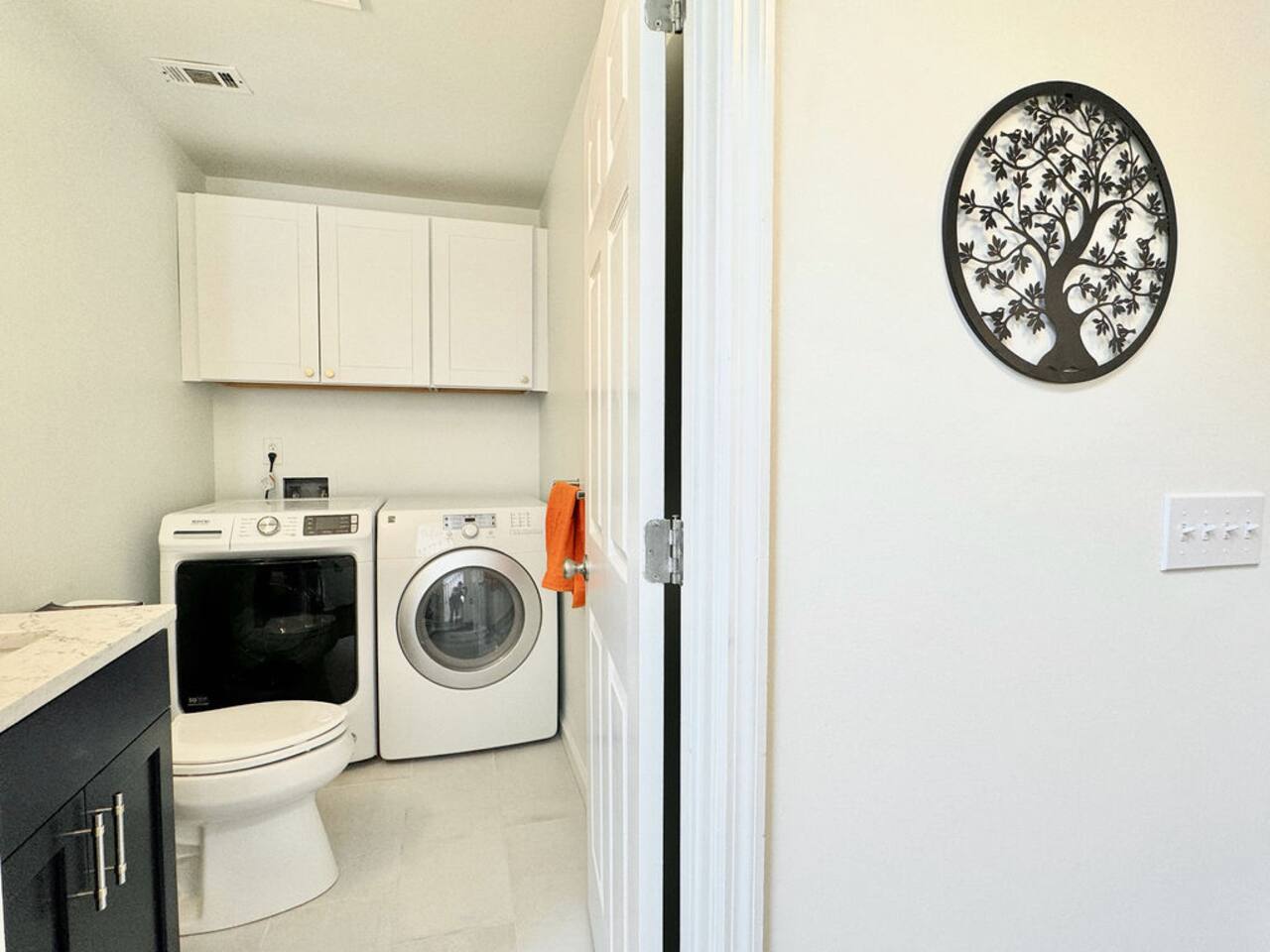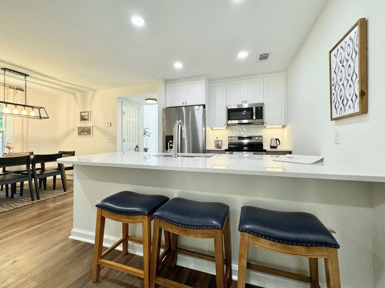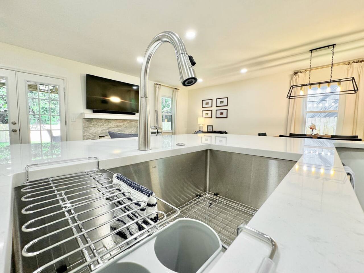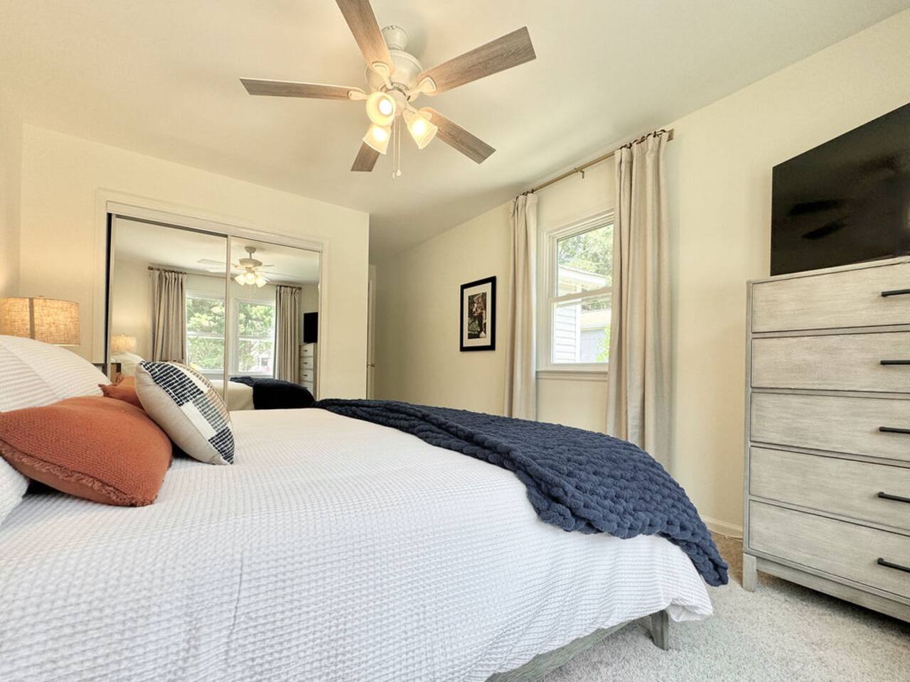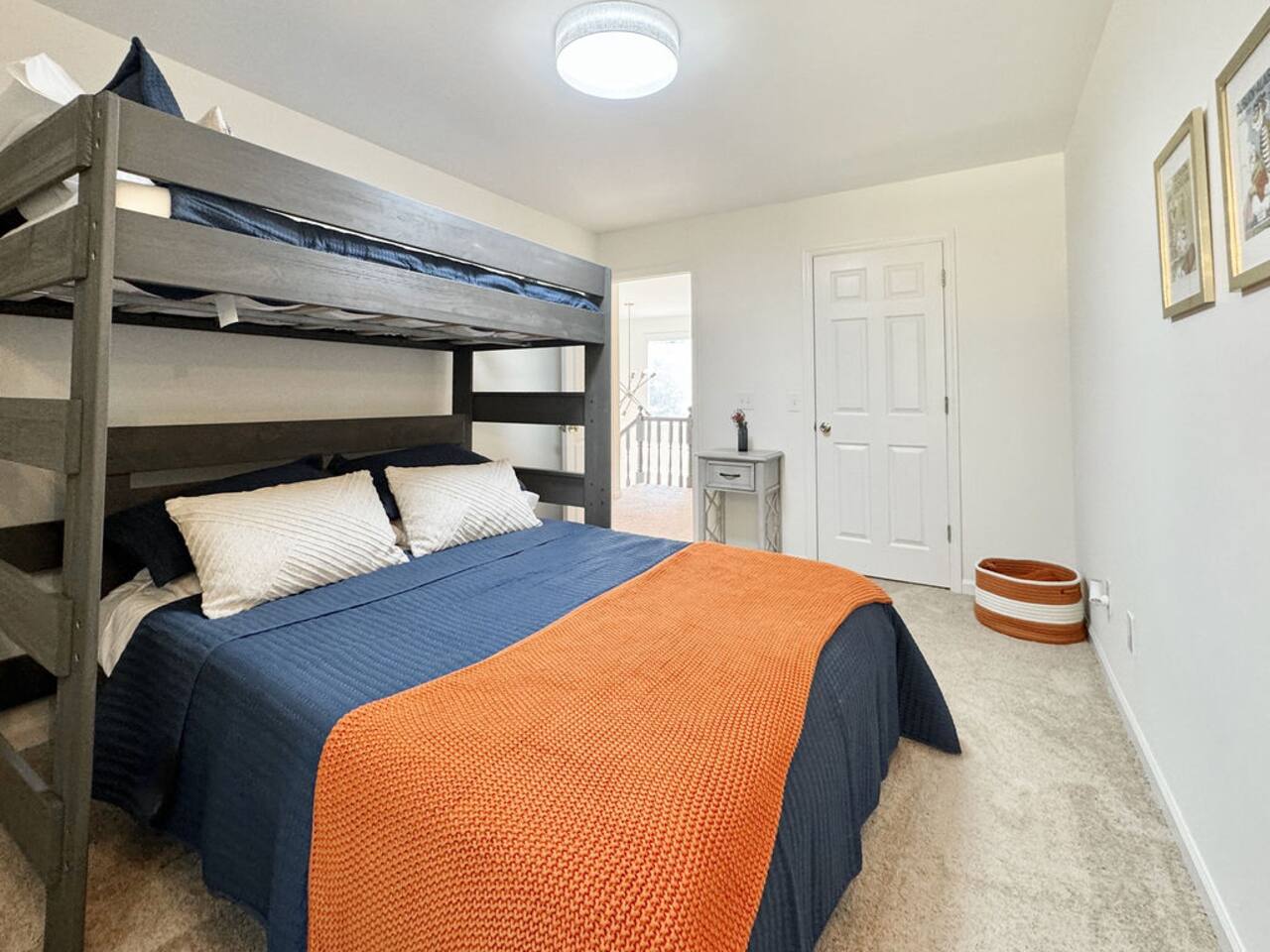 THE SPACE Comfortably sleeps 7 to 9 — Bedroom 1 - King Bed Bedroom 2 - King Bed Bedroom 3 - Queen/Twin Bunk Bed Additional Queen size air mattress available upon request. 2 full baths are upstairs. 1/2 bath plus laundry room are downstairs. FREE PARKING for 3-4 cars. An extended private driveway is in front. EATING AREA for 9– 6 top dining table plus 3 counterstools at kitchen bar. MODERN LIVING AREA Stylish curved sofa facing updated fireplace and tv. Stocked coffee bar. Extendable dining table FENCED BACKYARD WITH LARGE PATIO New Weber grill, outdoor dining table with built-in fire pit, large cooler on wheels. Corn hole and Jenga too! IF AUBIE'S ABODE IS ALREADY BOOKED FOR YOUR DATES - check out our sister property that is in the same neighborhood just a few doors down. Aubie's Hangout - 2 bedrooms - sleeps 6