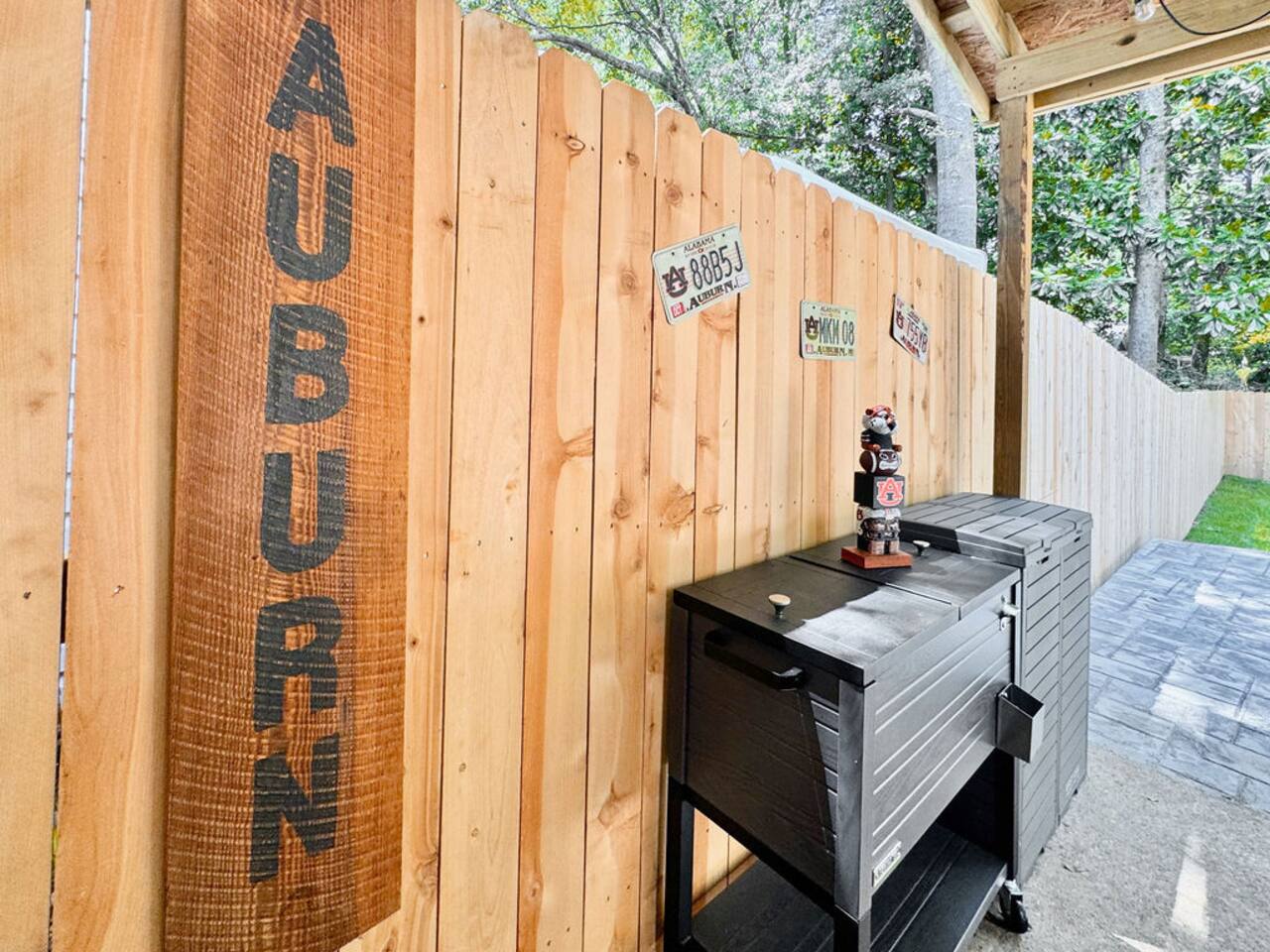 Aubie's Abode was professionally designed and completely renovated in 2024 with lots of attention to details. This townhouse features 3 bedrooms, 2 1/2 baths, private fenced yard with large patio, Weber grill, cooler, and patio set with built-in fire pit and interior fireplace. Perfectly located in a quiet neighborhood and just a few minutes walk to downtown restaurants, stores and AU's campus, and a short drive to Robert Trent Jones Golf Trail. Plenty of on site parking in private driveway.